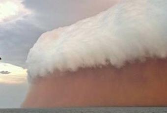 Asombrosas imágenes de una pared de polvo rojo que se eleva sobre el océano