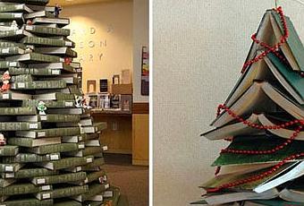 Por otro lado, si quieres que tus libros ocupen una vez al año otro lugar que no sea la estantería, colocar luces u otros adornos navideños. Os dejamos con algunas imágenes para que cojáis ideas y vuestro árbol sea el más original. haz tu propio árbol de Navidad con ellos en otro lugar de la casa. Para ello tan solo tienes que elegir varios libros (dependiendo de cómo de alto lo quieras) del mismo tamaño y grosor aproximadamente para crear la base. Después puedes colocarlos abiertos o cerrados para crear el cuerpo del árbol y a continuación