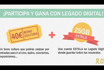 Y hemos decidido tirar la casa por la ventana, regístrate gratis en Legado Digital, hazte fan de nuestra página de Facebook o síguenos en Twitter, comparte el sorteo en tu muro de Facebook o tuitéalo con el hashtag #concursolegadodigital, y te vas a poder llevar un bono de cultura de 40 euros para que te lo gastes en lo que más rabia te dé :-D, y un plan Estela de 25 GB de espacio de por vida para que guardes los recuedos de muchos veranos.
