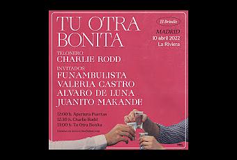 Tu otra bonita llegan a Madrid dentro de su actual gira llamada El Brindis, llegan con Charlie Rodd como invitado del show. En su gira El Brindis llega a Madrid la ocasión de ver a Tu otra bonita en horario matinal en La Riviera.