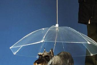 El mejor amigo del hombre no puede permanecer por más tiempo expuesto a las inclemencias meteorológicas.No puede ser que cuando llueve y sales a pasear con tu mascota tú permanezcas seco y el animalico se moje, que además luego querrás que no te ponga la casa perdida. Pues todas tus preocupaciones canino-pluviales han llegado a su fin. No tienes más que hacerte con este paraguas específico para desterrar el olor a perro mojado. Como ves el perrito queda totalmente a salvo del agua.Eso sí, para un gran danés o un mastín quizá se quede algo corto. Pero los perros de tamaño más contenido dejarán de mojarse en estos días lluviosos que aún nos quedan por delante. Además el paraguas, al ser transparente, le permite ver a su alrededor y también ayuda a que no lo pisen el resto de transeuntes. En la parte central del paraguas hay un enganche para la correa a fin de que el can vaya bien sujeto.El precio del invento es de unos 20€ y te ahorrará esos minutos desesperantes al volver a casa en que por más que frotas el perro no se termina de secar y la toalla termina con más y más pelos.