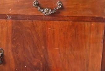 Estoy restaurando una mesita de noche, de estilo art deco bastante antigua, pero tengo un pequeño problema, no puedo quitar la puerta ya que las bisagras están super oxidadas.