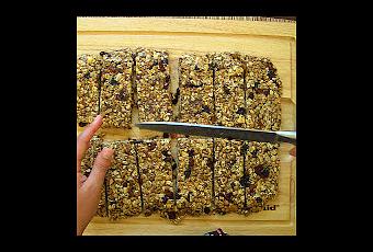 Pon papel vegetal en un plato o pyrex cuadrado y pones la mezcla ahí. Presiona con el papel vegetal para que se haga compacto y durito. Déjalo enfriar por unas 2 ó 3 horas y córtalo en rectángulos.