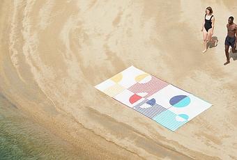 Conservando su seña de identidad, cada diseño incorpora cuatro pinzas, que permiten fijar la toalla a la arena a través de las esquinas, quedando perfectamente extendida y evitando que se vuele con el viento.
