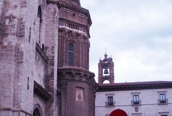 Desde el puente se divisa la principal joya arquitectónica de Tudela: la catedral cisterciense de Santa María: construida hacia el año 1180 sobre los restos de zuna antigua mezquita árabe. Desde sus tres portadas, la más hermosa es la denominada del Juicio Final, que mezcla estilos románico y gótico. En el interior del templo, que tiene tres naves, se atesoran piezas destacables como una sillería del coro de un total de 86 asientos, un retablo del siglo XV y una escultura románica de la Virgen Blanca.