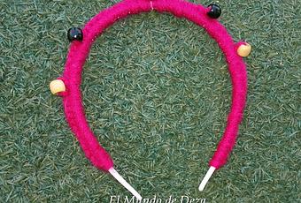 Un día una de las niñas, me trajo una diadema que tenía algo ya viejecita, para que le diera un toque diferente.Así que en un periquete me puse a ello, y le tunee la diadema, ella ha quedado encantada, En muy fácil de realizar, forramos la diadema a punto de cadeneta pasándola por la misma diadema, de vez en cuando le ponemos algún abalorio, que previamente habremos insertado en la lana antes de comenzar a forrar la diadema.La terminamos, anudamos bien para que no se salga y listo... Diadema nueva.