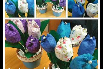 Suelo hacer tres, para mi madre, para mi madrina y para mi suegra. Este año me decidí por lo más típico, una maceta con flores, tulipanes para ser más exactos.