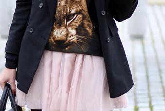En este primer look del año os quiero enseñar esta falda de tul que compré en la sección de niños de Massimo Dutti, y que combiné con una camiseta con el estampado de un leopardo, y una blazer.
