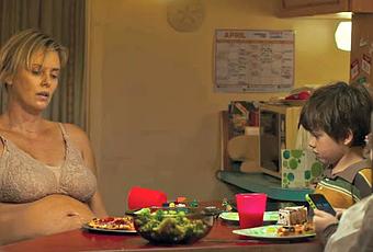 Tully resulta asombrosa en su simplicidad y en su conocimiento íntimo de las frustraciones y los anhelos de la madurez. El planteamiento es simple: las dificultades de una madre para sacar adelante a tres hijos, una de ellos, recién nacida. No hay más. Conocemos esta historia: la hemos visto miles de veces -recientemente en Mira lo que has hecho-. Algunos, incluso, la hemos vivido. Dormir poco, cambiar pañales, la lactancia, el llanto continuo. Todo esto se refleja en la típica secuencia de montaje que repite planos, momentos -un despertador que suena- para expresar una rutina diaria (infernal). Nada original, aunque con un profundo conocimiento de lo contado: me ha gustado cuando la cámara se fija en las manchas: en la ropa, en el sofá, en la alfombra. Si hay niños, hay manchas. Nada de esto resulta novedoso. El mérito es aprovechar este relato para hablar de los conflictos de la vida moderna, específicamente de cierta clase media estadounidense, que sufre estrecheces económicas a pesar de disfrutar de pequeños lujos que, sin embargo, no se perciben como bienestar. Esa clase media que permanece adormecida viendo programas de telerrealidad.Esta película es la segunda colaboración de tres talentos como Jason Reitman -Up in the Air (2009)- la guionista Diablo Cody -Juno (2007)- y la actriz Charlize Theron -Young Adult (2011)-. La cara visible de esta obra es una fantástica Theron. La sudafricana se convierte en su personaje: con ojeras, sobrepeso y estrías. No estoy diciendo que sea un mérito que la actriz afee su belleza, lo que hay que aplaudir es su transformación en una ama de casa, en el sentido machista de la expresión. En alguien que no tiene nada que ver con el glamour de una gran estrella de Hollywood. Por otro lado, el director, Reitman, cumple, deja que las cosas ocurran delante de la cámara, pero también aporta una sensibilidad visual apreciable: el momento tierno en el que Marlo cepilla el cuerpo de su hijo; las fugas oníricas sobre las sirenas; el viaje en coche a Brooklyn a través de cortes de temas de Cyndi Lauper. Mencionemos también aquí la banda sonora indie de Rob Simonsen, perfecta. Pero si hay que hablar autoría, me inclino hacia el texto de Cody. La guionista de Ricki (Jonathan Demme, 2015) es la que le da una voz muy personal a esta película, en la que encontramos señales de su estilo característico: nos habla del desencanto (de la vida burguesa), nos muestra personajes que se expresan con frases brillantes, que son más inteligentes que la media, a pesar de que se puedan considerar fracasados en el absurdo marco de la cultura del éxito. El guión es inteligente, redondo y funciona como un reloj de precisión. Como un thriller con trampa de Hollywood. Pero su gran virtud es que consigue esto aparentando que se deja llevar por la narración naturalista de lo que le pasa a una madre y a su familia. Es maravilloso escuchar las reflexiones de Cody, personales, íntimas, sabias y hermosas. Y aprender de esa mirada que nos ve a nosotros, los hombres, desde fuera, y que nos retrata de una forma bastante fiel. Esa cara de no saber qué está pasando, que pone perpetuamente Ron Livingston. Divertida y honda, Tully debería ser obligatoria para cualquier pareja que se embarca en la travesía de ser padres.