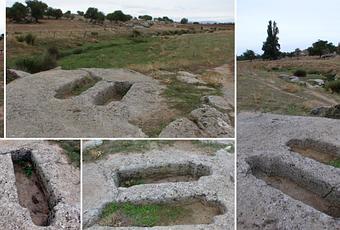 Se trata de dos tumbas antropomorfas situadas a unos 3.5Km, del pueblo en dirección Este y junto al cauce del arroyo de Ripas, tienen la cabeza muy diferenciada en semicírculo lo que las podría encuadrar como las mas tardías dentro de la sepulturas excavadas en la roca quizás finales del siglo XII o principios del XIII, me extraña que unas sepulturas de tal ejecución no estén situadas cerca de un lugar de culto.