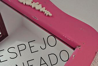 Después de pintarlo de rosa y desgastarlo por los bordes (esta vez mejor que la anterior), se me encendió la bombilla y me acordé de un relieve de rosas que tenía guardado y que cogí de una cajonera que ví en el contenedor rota.