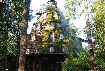 Si estas buscando un hotel donde quedarte en Huilo Huilo no te preocupes, este lugar con forma de Volcan te hechizara.