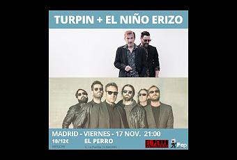 Doble concierto en El perro de la parte de atrás del coche, doble show con Turpin y con El niño erizo en eléctrico. Presentado como una fecha de viernes, podremos ver a dos buenas formaciones en El perro de la parte de atrás del coche.Turpin tienen mucho que mostrarnos en este directo en eléctrico, una propuesta directa y sincera con la que seguir descubriendo a esta formación. El niño erizo por su parte nos esperan en una nueva visita a la capital, una apuesta con la que mostrarán sus nuevos y no tan nuevos temas.