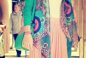 en el look de hoy damos la importancia total a los complementos y es que este estilismo no seria lo mismo sin el collar, el pañuelo y el bolso en tonos turquesa (todo de Complementos Serrano Monzón).