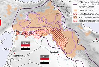 Las fronteras históricas del Kurdistán y la distribución de los kurdos en la región. Fuente: Cartografía EOM