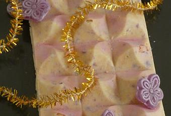 Turrón gourmet con caramelos de violetas: sorprende con su toque floral, color elegante y sabor único. Ideal para quienes buscan exclusividad en Navidad.