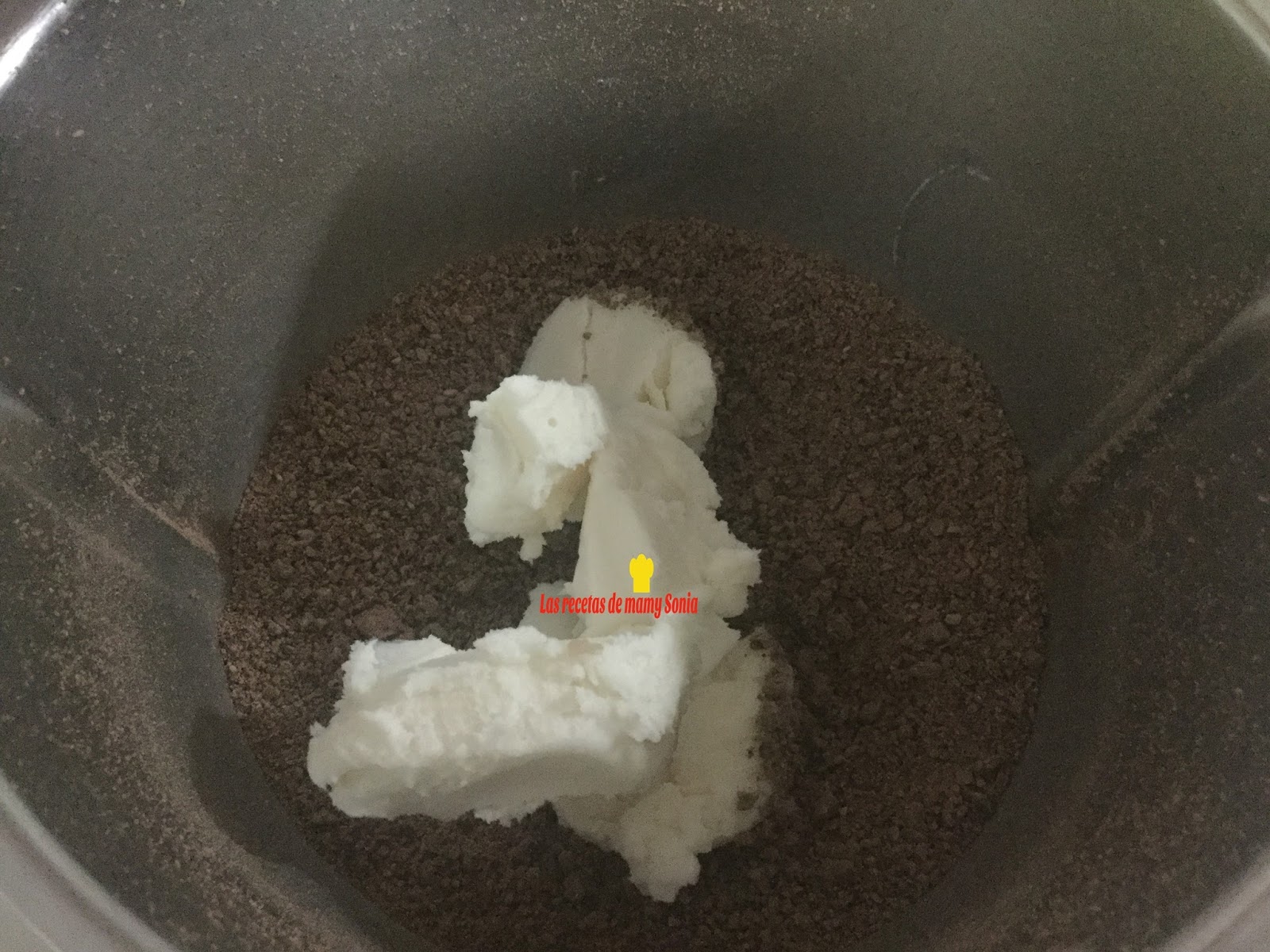 Troceamos con las manos el chocolate (en trozos grandes) y metemos en