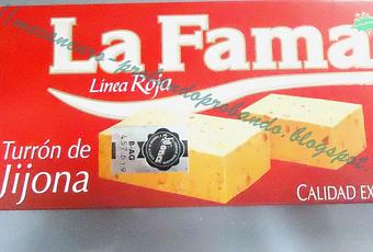 Y aprovechando entre todos los turrones que ya tengo en casa, os hablaré de uno que venía en la caja de Navidad de mi novio, que hoy hemos abierto y que ya nos hemos comido un trocito. Os hablo del TURRÓN DE JIJONA, y entre todas las marcas que lo comercializan, me referiré al comercializado por LA FAMA, que seguro conocemos todos.Espero que mi opinión os sea útil y os anime a probar este turrón, pues está realmente bueno.
