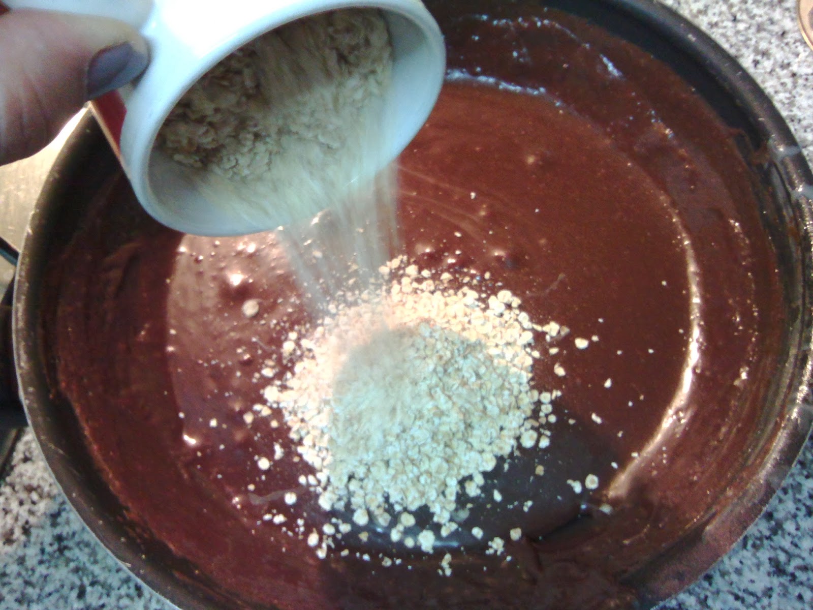 Luego de poner una primera base las galletas, cubrir con la mezcla de chocolate y avena, y estirarla bien con la parte de atrás de la cuchara o una espátula o lengua de silicona o de acero.