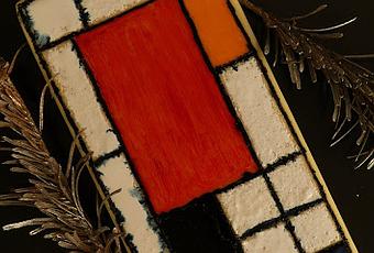 Desmoldamos con cuidado. Trazamos el dibujo simulando a un cuadro de Mondrian y pintamos con los respectivos colores.