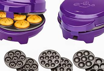 Máquina para hacer donuts, muffin, magdalenas y pop cake. Ahorrarás tiempo y espacio, en vez de usar 3 máquinas diferentes usarás sólo 1 máquina.Con esta máquina podemos hornear hasta 12 pop cake, 7 donuts o 7 magdalenas.