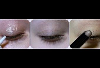 - Pasamos a delinear parte inferior y linea de agua, aplicamos de nuevo el long lasting número 38 y encima la sombra número 134 y difuminamos bien. Para que no haya corte ninguno utilizaremos una sombra en tono hueso para unificar el tono del párpado, yo he utilizado la sombra Naked2 de la paleta Naked Basics ( os haré pronto una review) y para iluminar el arco de la ceja he utilizado la Venus de la misma paleta.