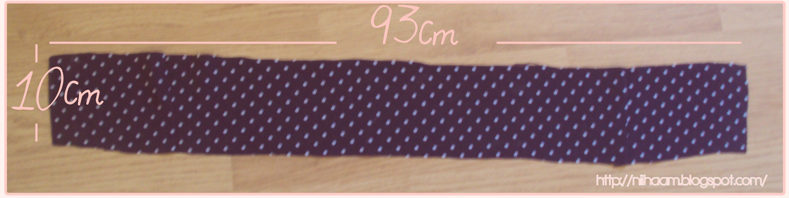 1.- Cortamos un trozo de tela de medidas 93x10 cm, doblamos a la mitad y afirmamos todo con alfileres.