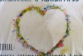 3- Place the paper heart on the T-shirt and put the crayon shavings around it. This way you will print the shape of the heart. If you prefer to stamp the complete heart, place not the shape but the profile of the heart and fill in with the shavings.