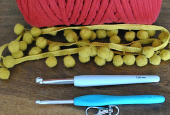 En los mosquetones pondremos varias vueltas de cinta de trapillo, para poder colgar el bolso.