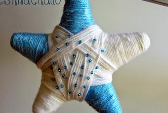 I have used a polystyrene star, yarns, the silicon gun to stick them, beads and thread to sew them. It is so easy that I am sure you have enough with the photos and it is not necessary any explanation.