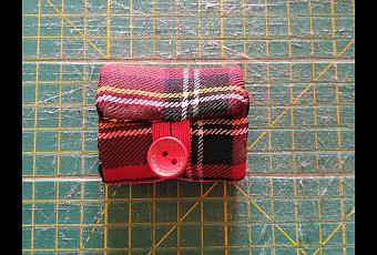 Ahora ya lo plegamos y hay que calcular donde poner el botón, yo "acerté" a la tercera, no había manera, por más que tomaba medidas. La goma tenía vida propia.