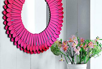 Como veis la idea es simple pero muy original. Para hacer un espejo con cucharas lo único que necesitareis son cucharillas de plásticos de un color vivo, un espejo, y pegamento. A continuación os dejamos un foto tutorial que hemos encontrado en un foro y que ilustra muy bien cómo es su construcción. ¿Os animais a hacer uno?