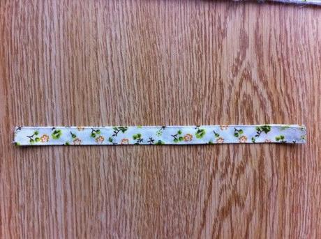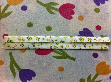 A continuación haremos la agarradera. Planchamos la pieza no.3 para hacer unos dobleces tipo bies, doblamos a la mitad y pasamos una costura mor ambos lados: