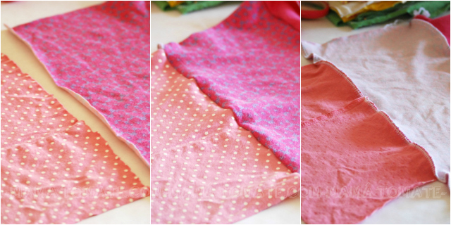 3 sencillos pasos, unir colores, los que te gusten. Juntar por el derecho remallar o coser en recto, (no hace falta el sulfilado en las telas de punto, pero si lo haces no estará de más) y por último revisar que se hayan cogido bien las dos telas y que no nos queden agujerosAquí está Martina cosiendo, ha sido su ESTRENO con la overlock y ella sola ha cosido casi todas las telas, una crack!! Al principio hacía desastres, le quedaban agujeros entre las costuras pero poco a poco ha ido cogiendo el truco y estaba encantada!, tanto que no quería ir a hacer otra cosa ;))