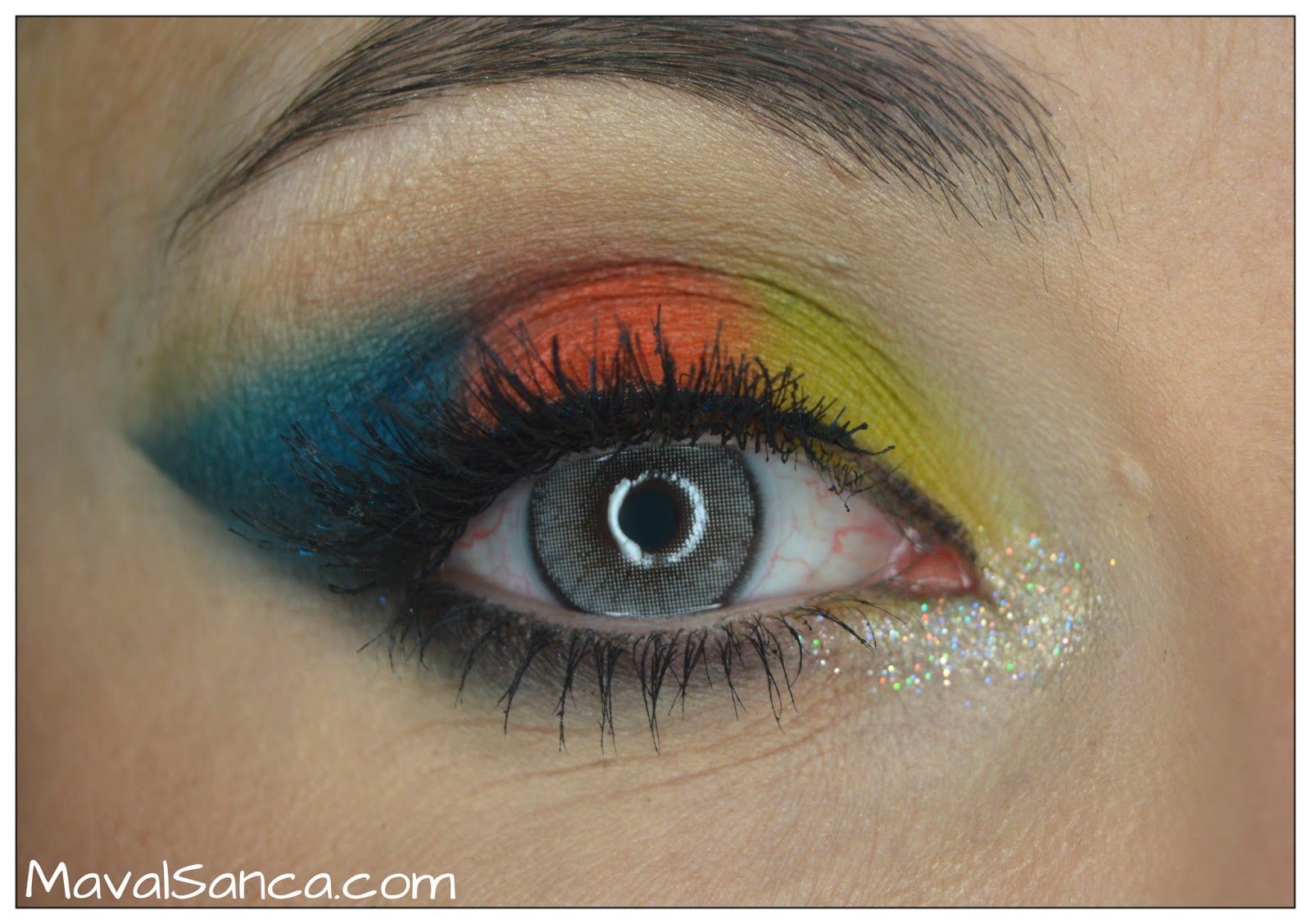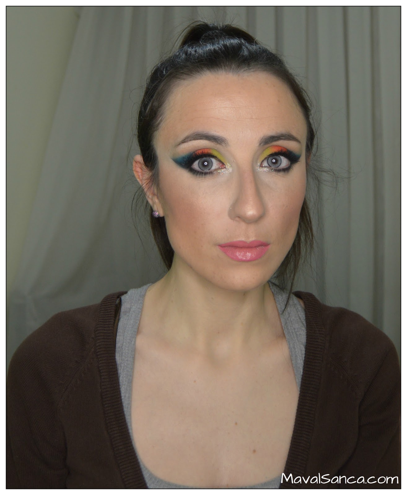 El maquillaje de hoy no es discreto pero no me podéis discutir que es llevable e incluso es favorecedor porque la combinación de colores resalta los ojos de una forma muy notable.