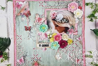 Se acerca la temporada de bodas y este layout es perfecto para guardar un bonito recuerdo de nuestro día tan especial, o tal vez para regalar a los novios.Les he dado un toque vintage a los papeles entintando y desgastando los bordes. Para el fondo he utilizado tinta, una plantilla y los preciosos sellos April de Kora Projects.