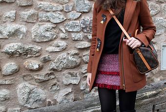 Zara Sweater and Coat | Mango Skirt | Stradivarius Boots | Louis Vuitton Speedy 25