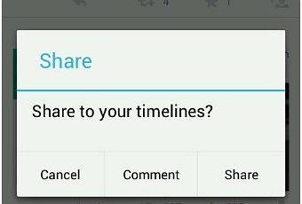 En esa ventana la aplicación pregunta si solo quieren Compartir o Agregar un Comentario y Compartir, como bien pueden ver en la siguiente imagen (iOS) o en la imagen de portada (Android)