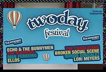 Se trata del Twoday Festival, que se celebrara los días 5 y 6 de noviembre en la Feria de Muestras de Valladolid. Podremos disfrutar de los directos de Iván Ferreiro, Ellos (presentándonos su "Cardiopatía Severa"), Lori Meyers o Quique Gonzalez a nivel nacional y de Broken Social Scene, The Horrors, Echo & The Bunnymen o The Charlatans a nivel internacional.