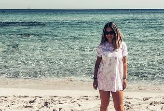 Para empezar, esta camiseta oversize, que puede pasar perfectamente por un vestido playero. Tiene estampado tye die en color lila, dos de las tendencias de este verano. Si os gusta, aprovechad ahora, que está de rebajas. Este look me recuerda a la infancia, cuando teñíamos las camisetas en los campamentos de verano, yo creo que por eso me gusta tanto. Esta foto lleva un filtro, que utilicé en instagram, sin querer borré la foto original.
