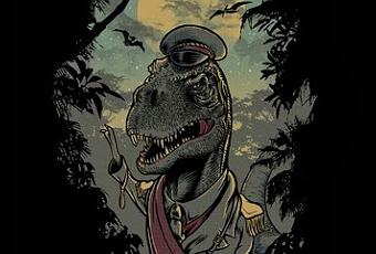 La imagen que se tiene del tiranosaurio es la de un malvado y fiero carnívoro capaz de arrasar todo a su paso. Los ilustradores Branko Ricov y Nestor Gomez van más alla y hacen un juego de palabras con "tyrant", que a la postre es la raíz de "tyrannosaurus", designando al popular dinosaurio como un déspota o un dictador con uniforme militar y todo, en este diseño para Threadless.