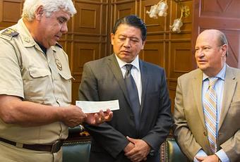Por su incansable labor en favor de la sociedad de la zona conurbada de San Luis Potosí, el rector de la UASLP arquitecto Manuel Villar Rubio, hizo entrega de un donativo por 58 mil pesos al comandante Adolfo Benavente Duque del Heroico Cuerpo de Bomberos de San Luis Potosí.