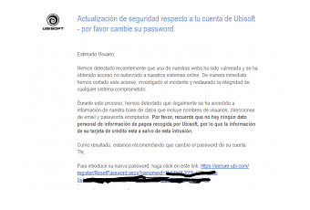 Según un e-mail de Ubisoft que recientemente he recibido, sus bases de datos han sido hackeadas y han obtenido contraseñas y emails de gente, por lo que han decidido enviar un correo a todos los usuarios para que cambien su contraseña para evitar problemas.