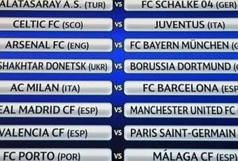 Arsenal (segundo del grupo B) y Bayern (líder del F) se medirán por segunda ocasión en ronda de eliminación directa, ya que con anterioridad sólo lo hicieron en octavos de final de la temporada 2004/05 (se impuso el once alemán ganando 3-1 en Munich y cayendo 1-0 en Londres), mientras que Valencia (segundo del F) y PSG (líder del A) lo harán por primera vez.