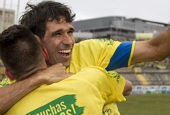 Juan Carlos Valerón celebra el retorno de su equipo a Primera