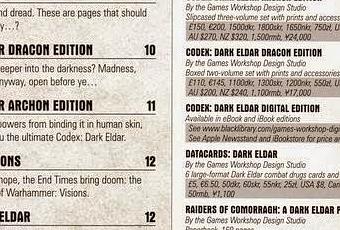 Desde el blog polaco Miniwojna ya tenemos confirmación visual de los precios,contenidos y algunas fotos mas de lo que sale este fin de semana en pre-pedidos para los Eldar Oscuros,incluidas las ediciones del codex y el propio codex.Ademas están las cajas "combo" de unidad mas transporte,una nueva guía de pintura y algunos extras mas.Creo que con esto esta todo ya confirmado: