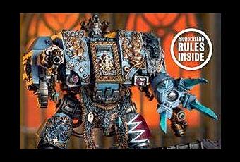 Una ultima hora que me ha mandado al correo electrónico nuestro compañero Akhillyes Athanapoulos,aunque la filtración primera procede de ChrisB del foro Dakka Dakka..Parece ser que es la portada de la WDW de la semana que viene,la 27 y lo que se en la portada es...Bjorn Garraimplacable en su nueva encarnación.El(Seguramente,por la garra y el sarcófago,ya que la heráldica le delata) o un nuevo modelo de Dread de plástico para los Lobos espaciales.Pone algo justo encima de "Rules inside" que no distingo bien."Murderfang" tal vez?.Ya no serán Dreads o es otro personaje y no es Bjorn?