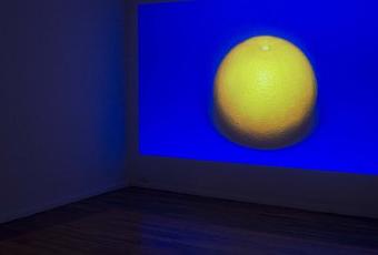 El video tiene una duración de 3.20 minutos y comienza con una inmensa naranja con su brillante cáscara porosa dominando el centro de la pantalla. Detrás del fruto, el fondo de color azul es un tono más oscuro y tiene la profundidad del cielo. La acción se inicia cuando aparece la punta de un pincel cargada con el más luminoso azul ultramar. Poco a poco la pintura azul cubre por completo la naranja. La pantalla entera se torna azul durante unos instantes y luego, lentamente reaparece el naranja con sus destellos.