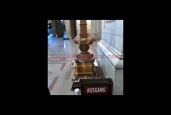 La escena está formada por mucha gente vestida con ropa normal. Hay un altar que parece egipcio, en el que hay una pelea entre el malvado dios nórdico Loki y uno de los héroes.