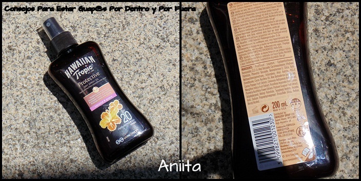 - Aceite seco de Hawaiian Tropic: Llevaba años queriendo tener uno y por fin me decidí y cogí este, he de decir que no lo he probado aun... :( Es de protección media SPF 20. Contiene 200ml y cuesta 11.00€.